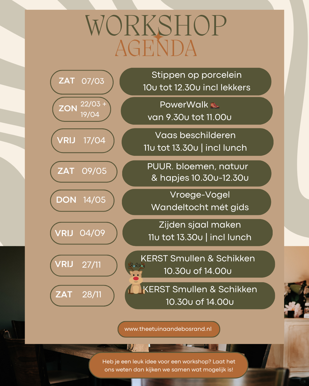 ๐ Aanmelden kan via WhatsApp bij Heidi 06-37397460 of via mail: info@theetuinaandebosrand.nl